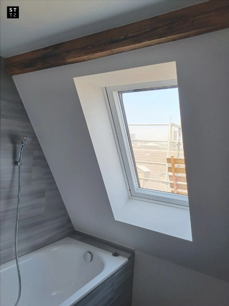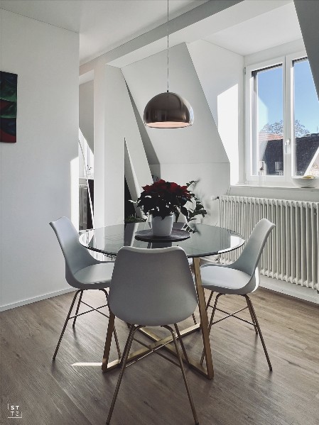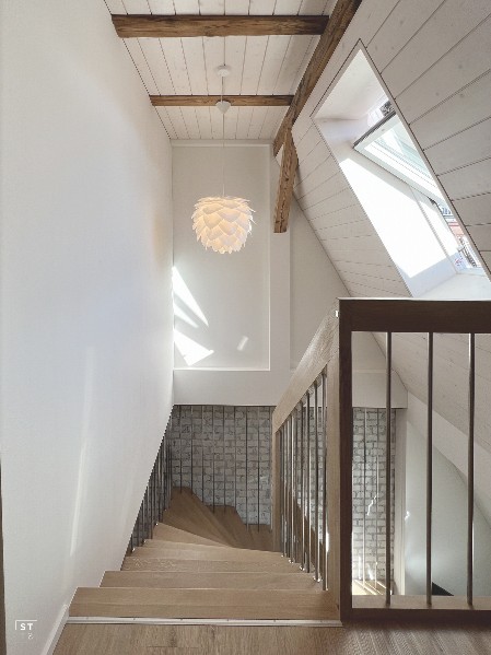 Totalsanierung und Umbau einer Dachwohnung und Estrich in 2 Maisonette-Wohnungen mit eigenem Dachterrassenzugang beim Goldbrunnenplatz in Zürich. Totalsanierung der Steigzonen, neue Stromversorgung und zentrale Warmwasserversorgung.